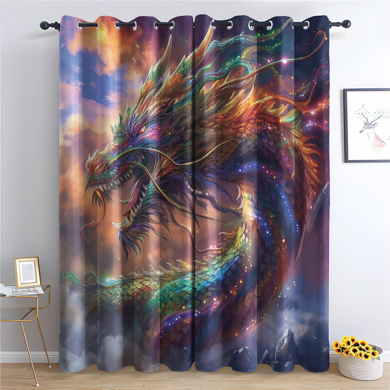 Patterned Blackout Curtains - Unique Home DecorationTimeless designs, quality craftsmanship and sustainable materials create the perfect foundation for a healthy, beautiful home.Quality FabricOur window curtains are made from 100% polyester fabric, Interwoven by advanced triple weave technology, material is safe and environmentally friendly, families with children and pets can use it with confidence.Grommet Top StyleInterior diameter is about 1.6 inches. Fits easily with standard curtain rods. Very easy to hang and slide.Rod not included.Pattern DesignPattern design enhances the artistic decorative effect of the curtains and makes the Window Dressing more attractive. Available in a variety of colors to fit the theme of each room.Digital PrintingWe use safe and environmentally friendly reactive printing and dyeing technology. High color fastness makes the fabric not easy to fade in long-term use and washing, and keep the color bright.Multiple FunctionsPrevent UV ray, excellent performance on room darkening, sun blocking, noise reducing, privacy protection, dust resistance and energy efficiency.Creates energy-saving insulating barrier against heat and cold, keeping room cooler in the summer and warmer in the winter.Customer ServiceIf you have any questions, please feel free to contact us. Our professional customer service will reply to you within 24 hours and provide you with a satisfactory solution.