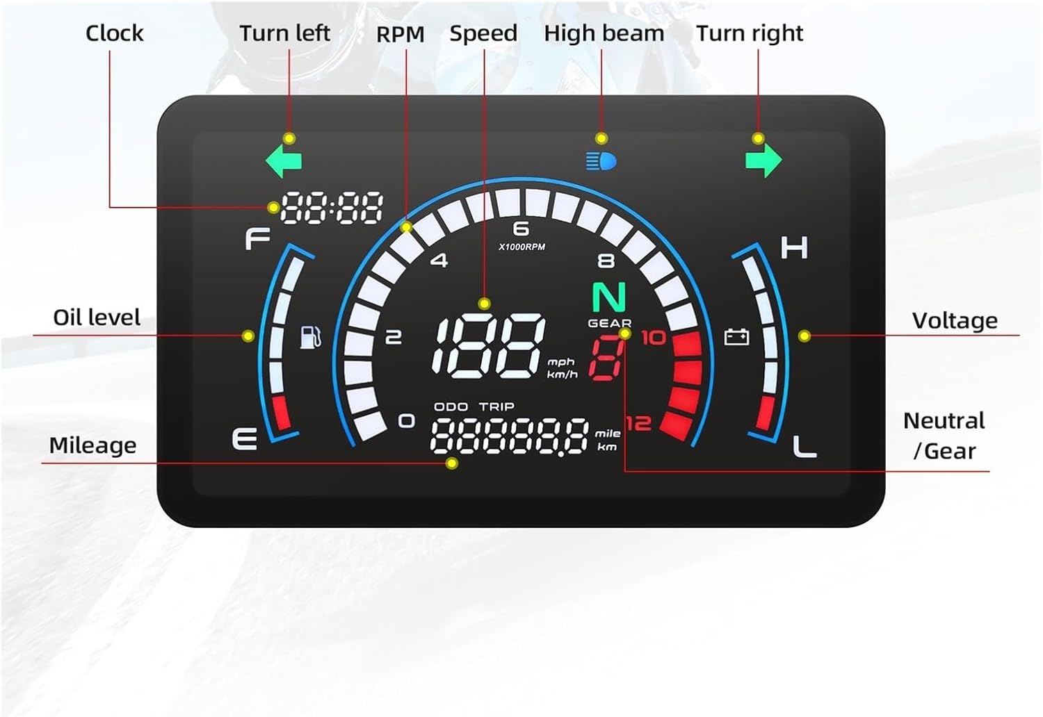 Motorcycle Tachometer Odometer Digital Gauge gauge Dashboard For EX5 For Dream/EX5 Specification :Speed Range: 0~199kmSpeed Range: 0~12000 RpmSubtotal Mileage: 0~999.9 kmTotal Mileage: 0~99999 kmName : digital Tachometer for motorcycleMaterial : ABSIf you have any questions, please feel free to contact us. We will solve the problem for you at the first time.