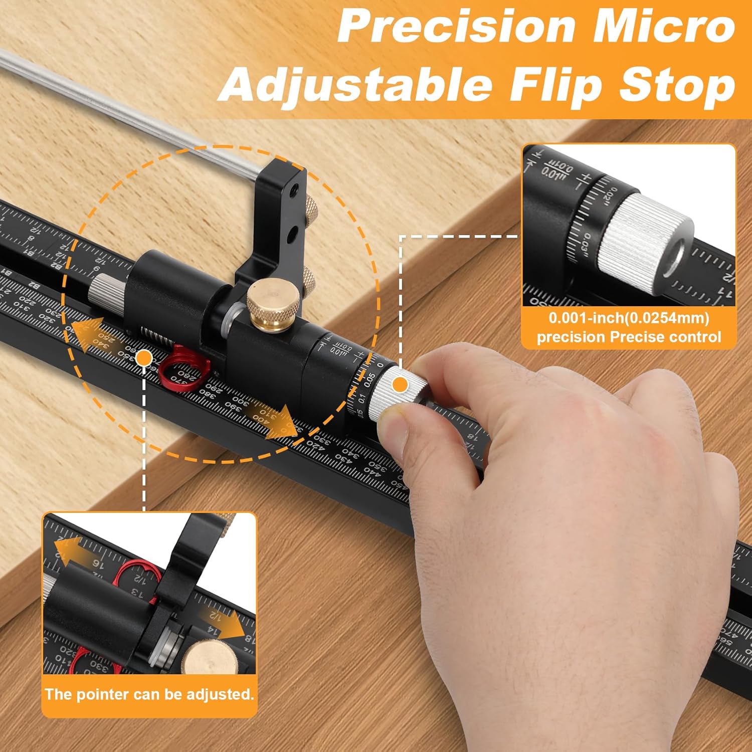 Precision Track Saw Parallel Guide System with Micro Adjustable Flip Stop, Zero Calibration, Repeatable Rip Cuts, 0.001 IN, Compatible with Festool Makita Milwaukee Triton Powertec WEN Guide Rails